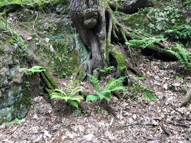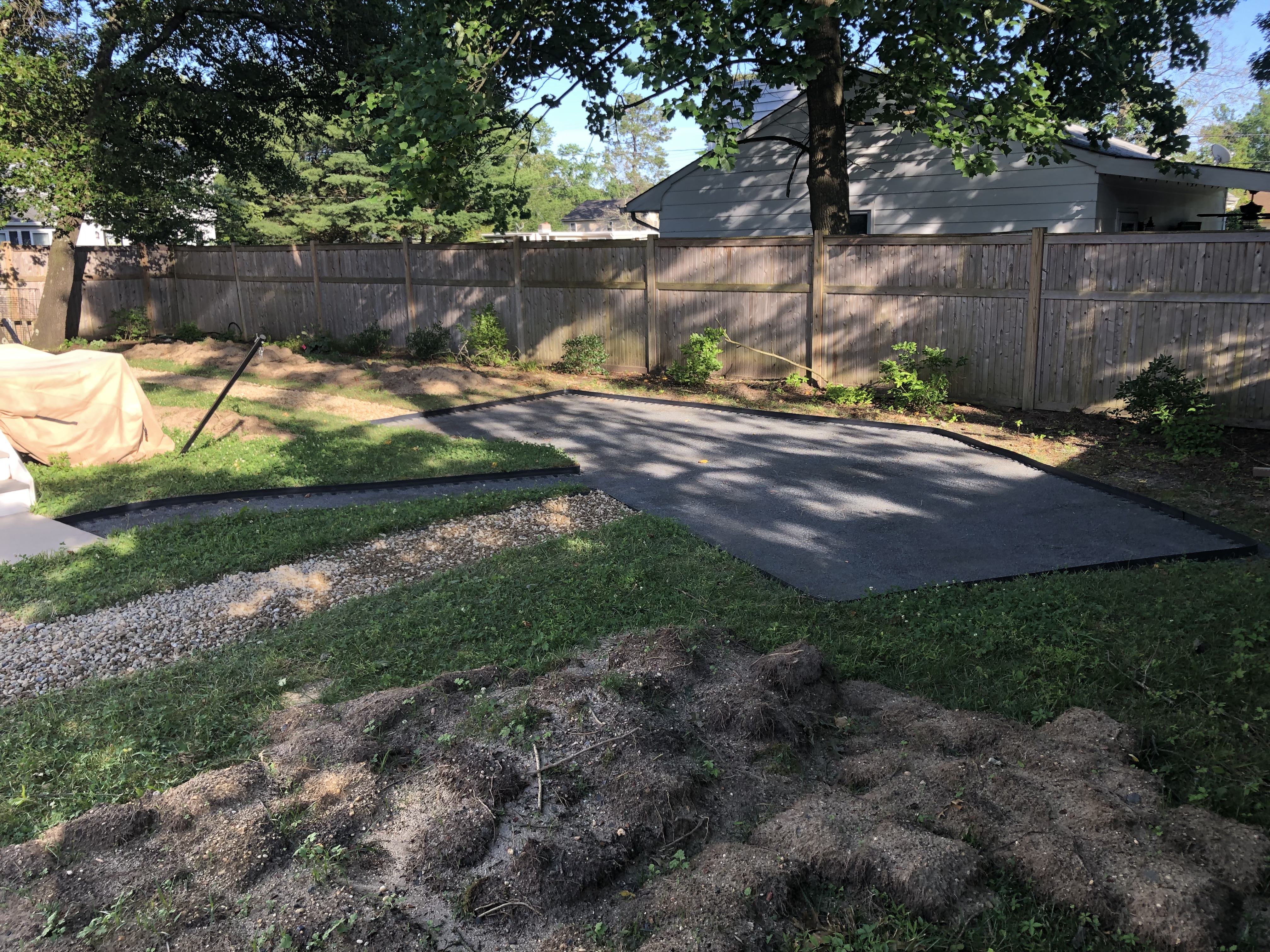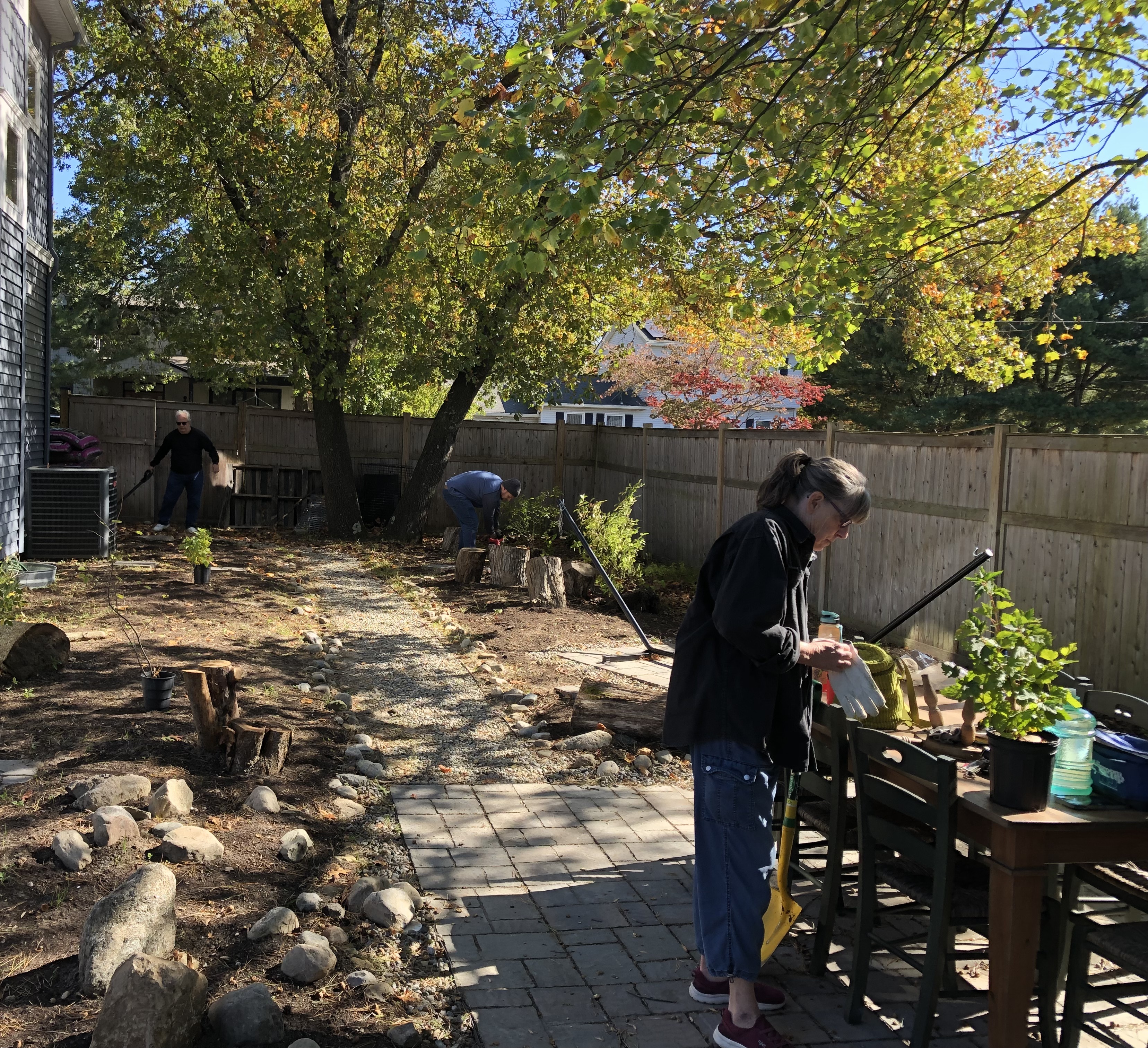 This yard was a blank slate that my awesome client told me to go wild and transform the whole thing! I modeled it after a woodland plant community I saw while camping in North Jersey. Her yard is shaded and moist so it fit well. We utilized recycled logs and rocks to create the feel of an old woodland and treated the pathways as though they represent the small stream in a forest with rocky edges. This yard is so serene and has such atmosphere when you’re there in person.